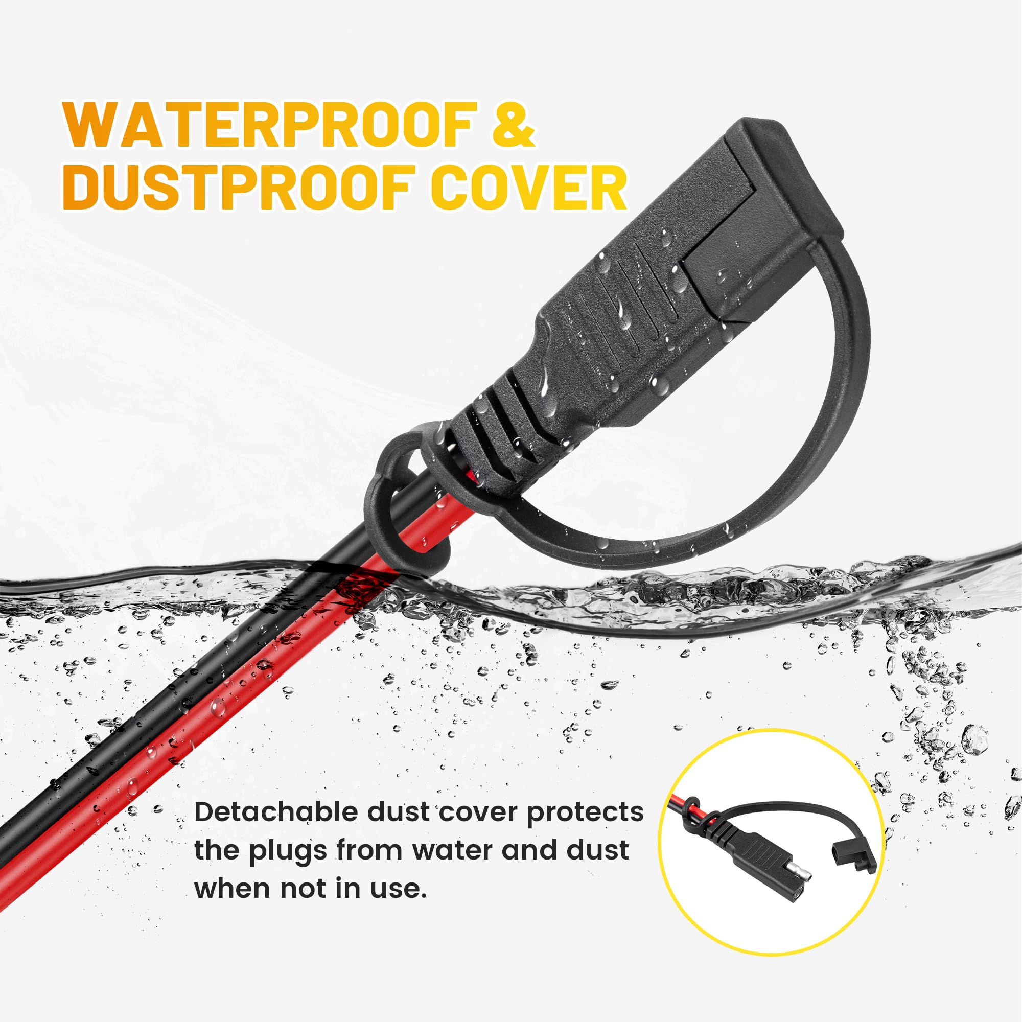 - 【Dustproof & Waterproof Cap】: 12 AWG battery tender extension cable designed with dust caps on both SAE plugs that snap on good to keep water and gunk out of the contacts, keeping the inside of the sae connector clean and dry when not in use